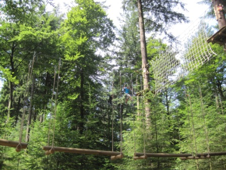 The next day took us in two different directions. Jordan went to a monkey zoo with Stephanie and his grand father. The big boys went to het klimbos, Dutch for climbing forest. They only have a website in Dutch. This is an obstacle course in the trees, where you go higher and higher if you dare. You are wearing a security harnass, so it is not as dangerous as it looks, as long as you follow the rules. The course consists of 4 levels. You start out low and end up 50 feet above ground. Only Nathan and Stephen did the course. Diederik and his mother stayed on solid ground. |
