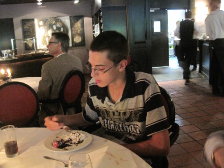 That evening dinner consisted of pancakes, dutch style. They are very large (a foot or so) and very thin and come will al kinds of topping most of which are baked in. Jordan enjoyed watching the cook bake them. |