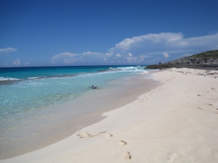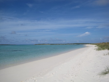 We had rented a beach house on Lochabar Bay. The Bay is protected from the Atlantic Ocean waves by a few Cays (small Islands). So the water is calm and there is very nice sand in the water and on the beach. The pictures show the house and the beach in front of the house.