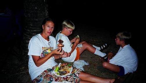 On our first day (July 26), we just stayed in Darwin. After the red eye flight from Bali, we did not do much. We had a nice hotel (although it could use some paint) and the first thing we did was get some sleep. That afternoon we hung around the ice-cold pool. Apparently in Australia they do not heat pools at all. The spa was cold too. That evening we had dinner at the Mindil Beach Market. This market takes place once a week and consists of innumerable stalls that sell food and all kinds of things you do not need. There are also the typical street entertainers trying to earn their keep. As you can see from the picture, Stephanie had no problem finding her seafood platter. |